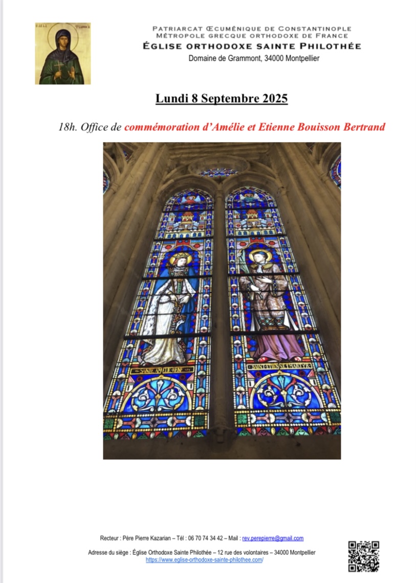 La paroisse francophone orthodoxe a été fondée en 1989 – Métropole grecque orthodoxe de France – Patriarcat œcuménique de Constantinople. Depuis 2000, elle occupe la chapelle néogothique du domaine de Grammont à Montpellier, consacrée à Sainte Philothée d’Athènes.