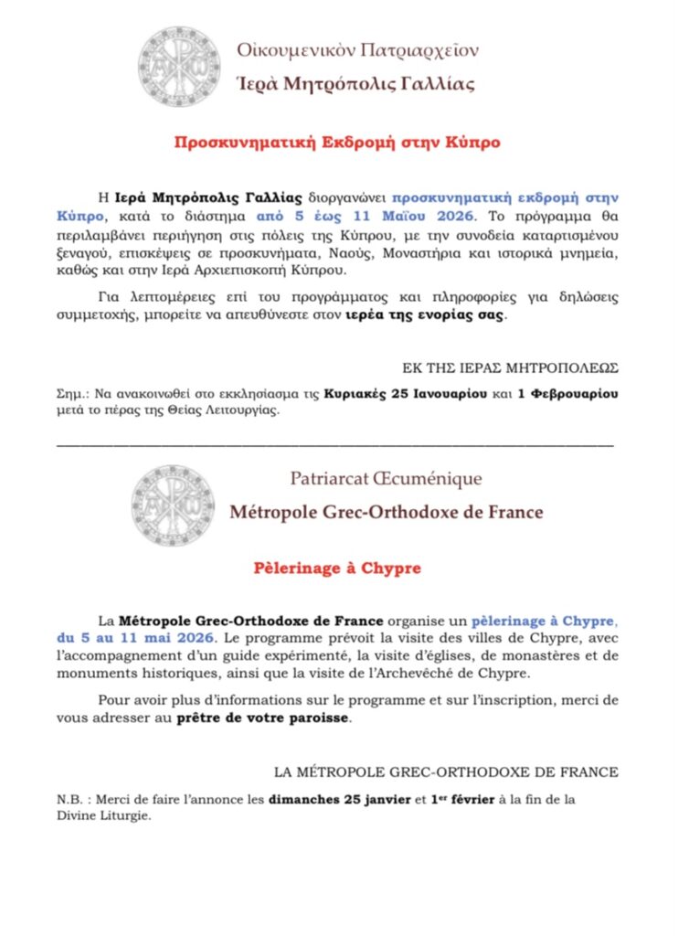 Les bulletins sont publiés dans les jours précédents les liturgies. Rédigés en français, ils reprennent les tropaires et lectures correspondant au dimanche ou à la fête.